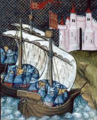 La traversée, pourtant, fut sans encombre, et le capitaine de la flotille s'éloigna prestement une fois l'armée débarquée, persuadé que les membres de la Confédération ne tarderaient pas et écraseraient l'Ost de sire Pastel sous peu… Ce qui ne serait en rien profitable au pirate s'il se trouvait à ce moment là dans les environs. Il suffisait qu'un des seigneurs d'Irminsul mette en batterie quelques balistes de Skuld pour incendier ses navires à des lieues de distance.